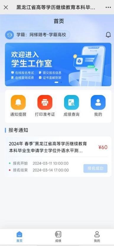 学生回到首页可看到当前报名状态为报名成功: