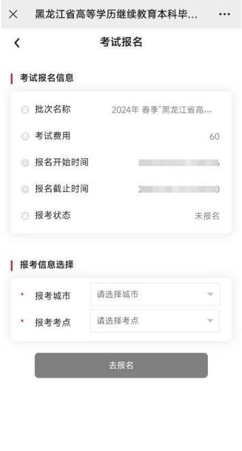 4. 点击报名考试进入报考界面,选择学生报考的考点,如下: