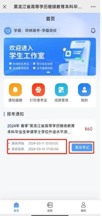 3. 登录完成进入到首页,学生可看到报名信息: